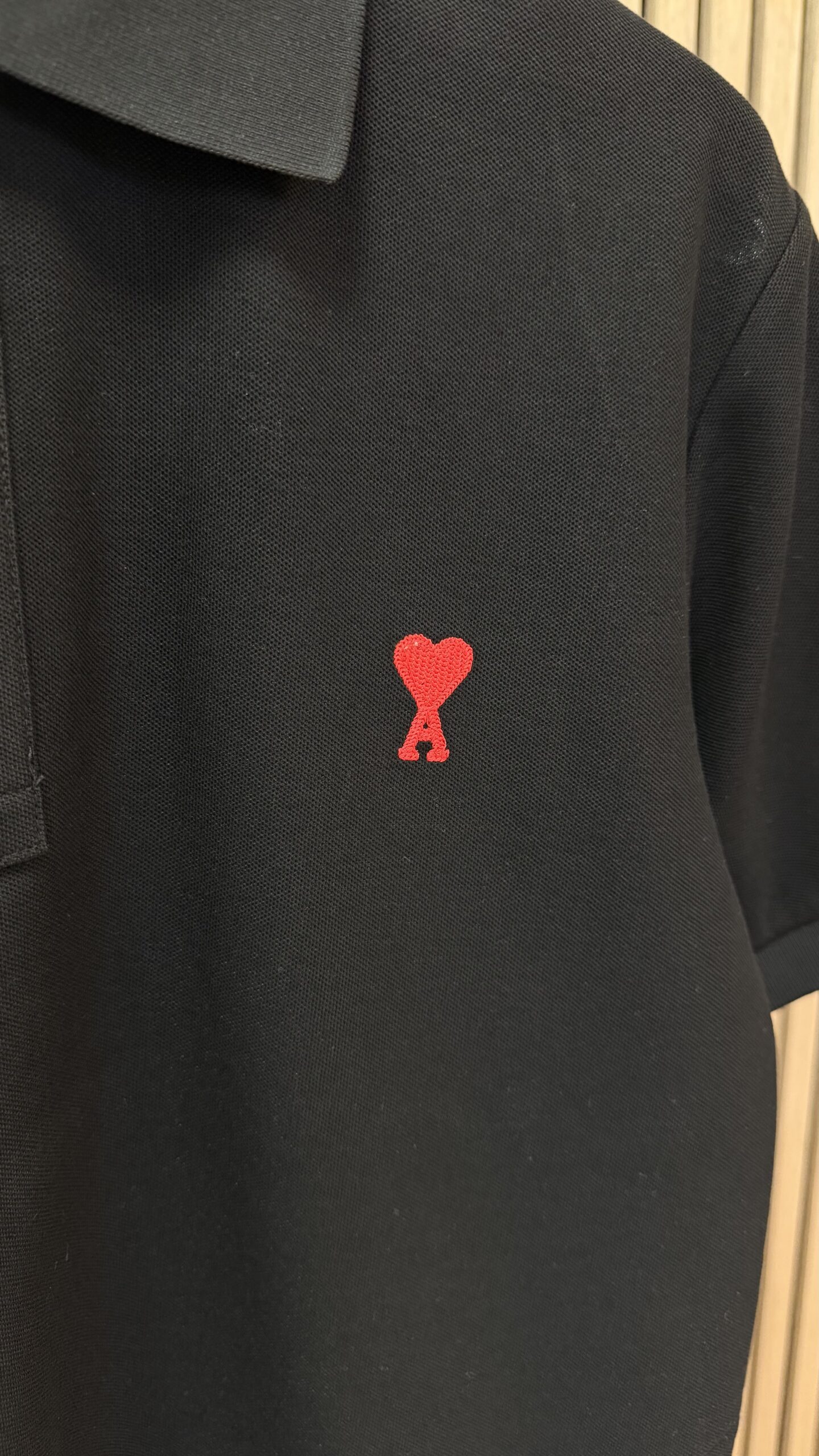 - Rode 'Ami de Coeur' logo geborduurd op de borst