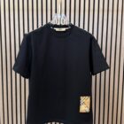 Stijlvol zwart T-shirt van Burberry met iconisch beige Classic Check label en ruitpatroon op de voorkant. Comfortabel en tijdloos design.