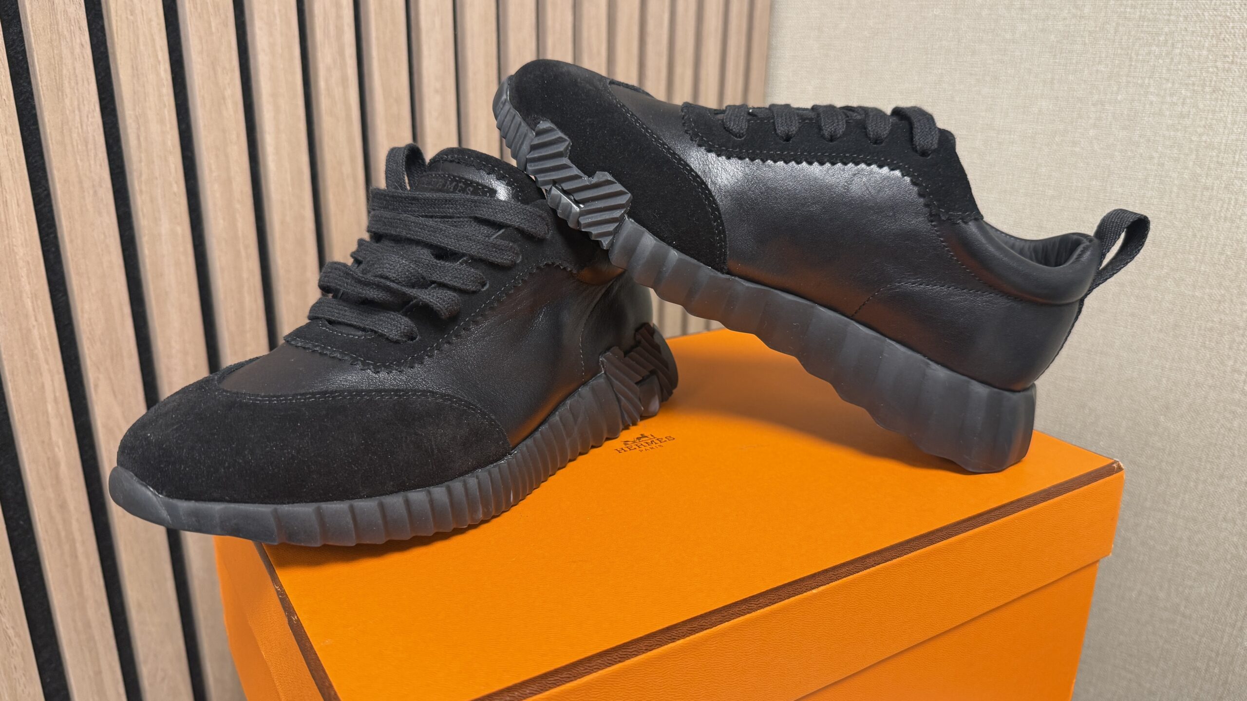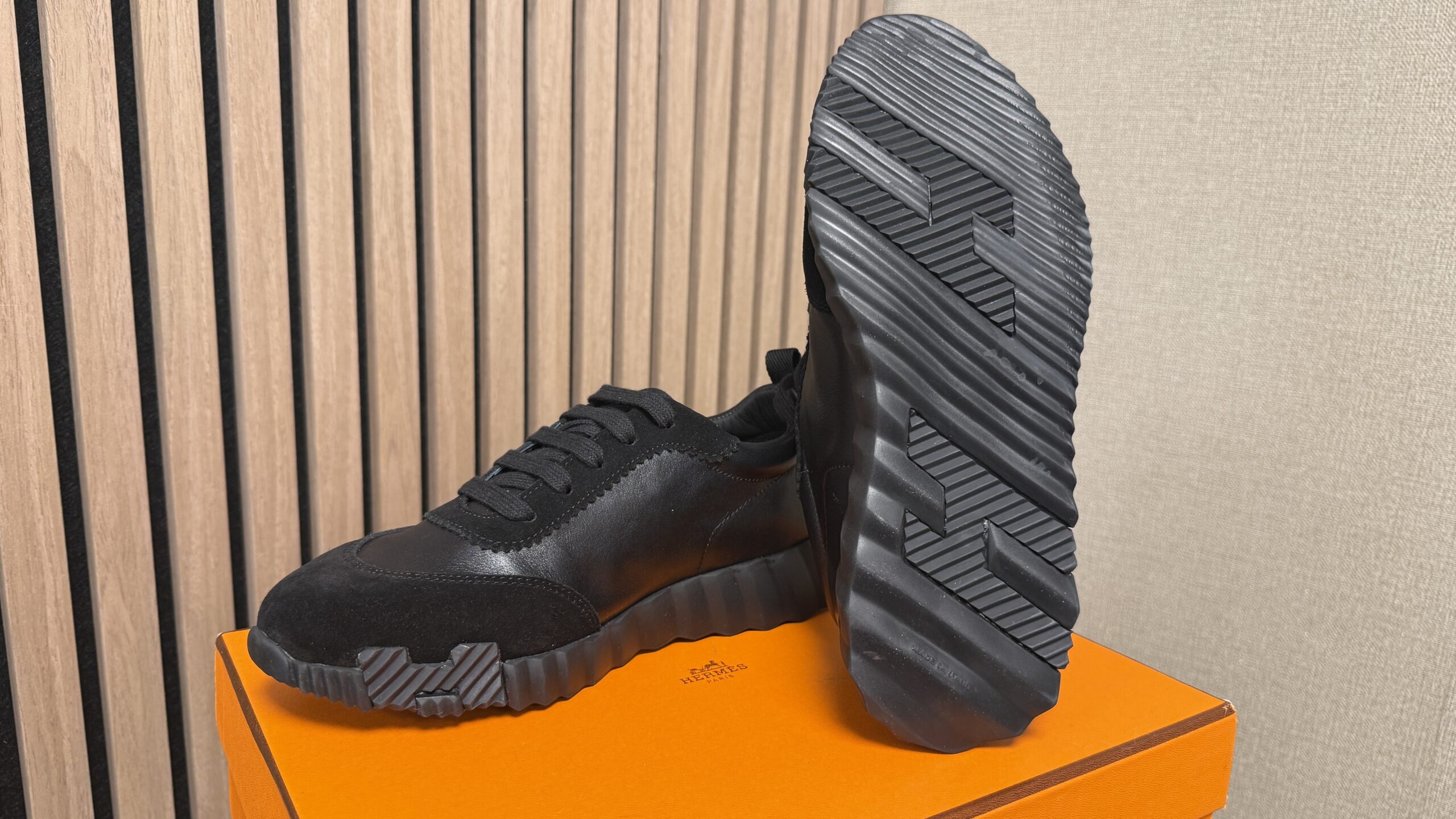 - Zwart leer en suède bovenwerk